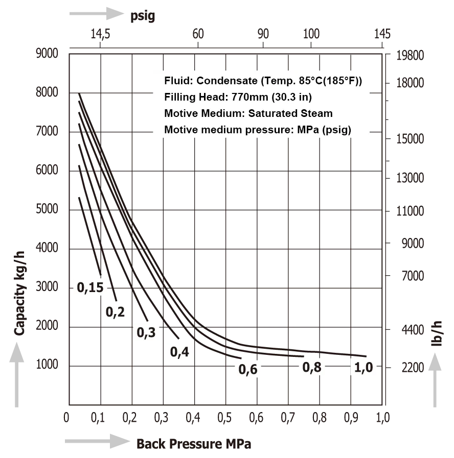 ●Maximum allowable pressure (PMA): 1,37MPa (199psig)