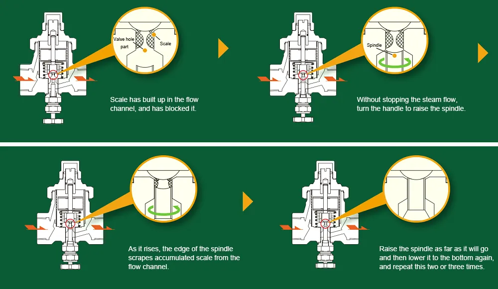 Система состоит из свободно вращающегося клапана, который центрируется и направляется потоком конденсата, идеально усаживаясь в седле клапана даже в условиях экстремального высокого давления. Это существенно снижает износ и эрозию компонентов клапана.