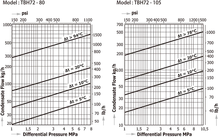 ●Минимальный перепад рабочего давления (⊿PMN): 10 бар ⊿PMN — это минимальный перепад рабочего давления между впуском и выпуском конденсатоотводчика.